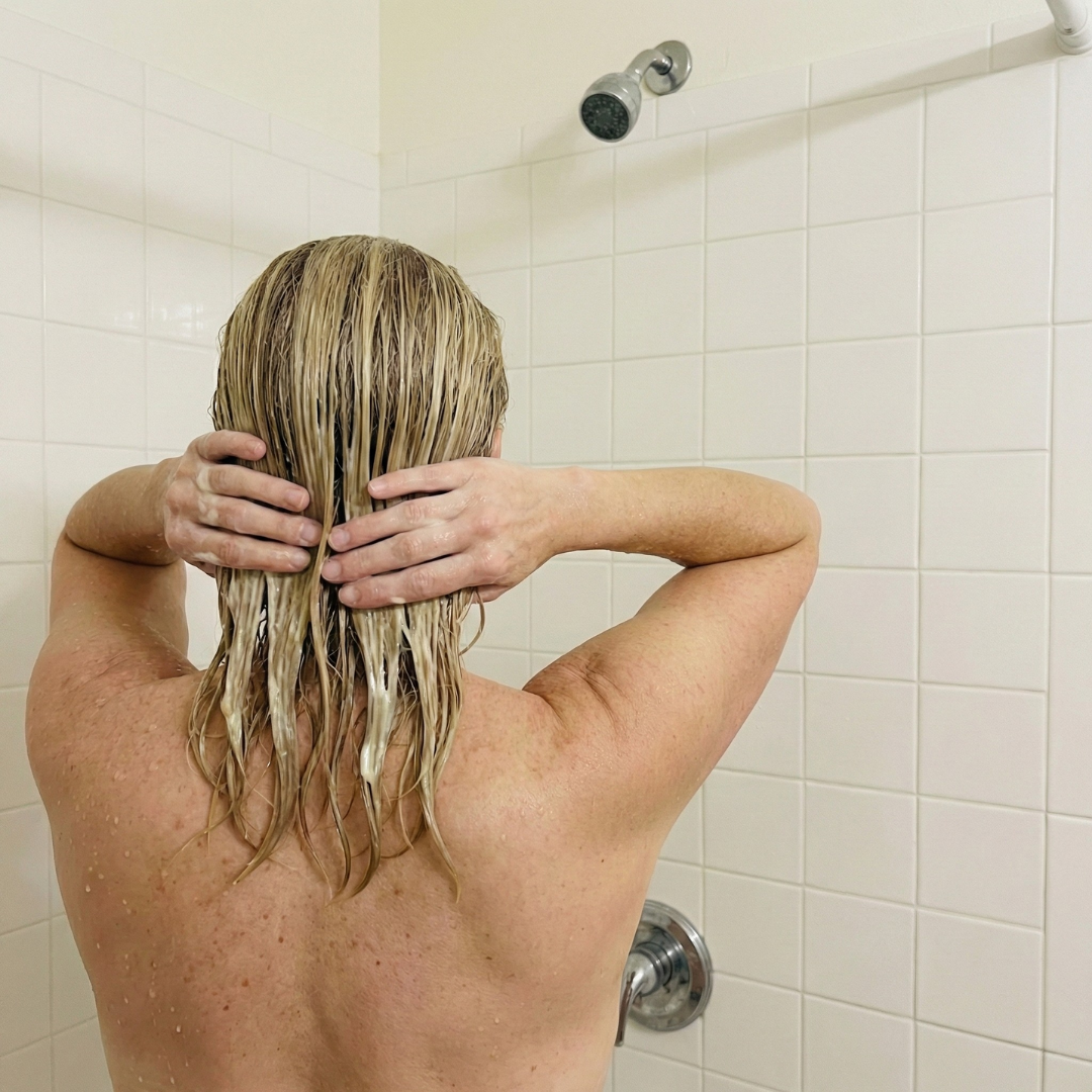 Start in the shower. Use your normal shampoo and rinse it out. Nothing fancy, just get your hair clean.